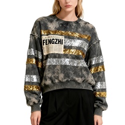 באיכות גבוהה הבציר נשטף זהב צבועות פסים פסים מודפסות לוגו עניבה אפור צבע הצוות סווטשירט pullover לנשים