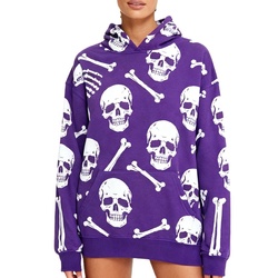 핫 세일 여성 대형 까마귀 풀오버 화이트 접착제 인쇄 해골 해골 긴 소매 없음 졸라매는 끈 보라색 운동복 까마귀