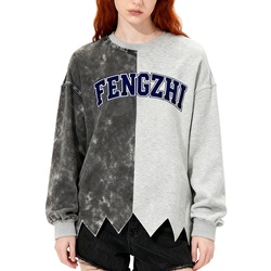 Модный осенний галстук-краситель с логотипом, круглым вырезом, Уникальный подол, мягкий Двухцветный пуловер из серого и черного цвета в стиле пэчворк для женщин